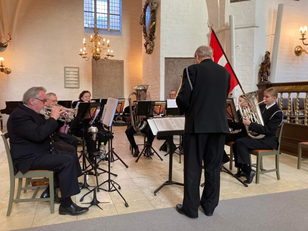 Allerede fra kl. 1330 til kl. 1400 vil Marinehjemmeværnets Musikkorps give en koncert i kirken, ligesom Musikkorpset vil spille under gudstjenesten. Gudstjenesten forventes at vare 45 minutter.