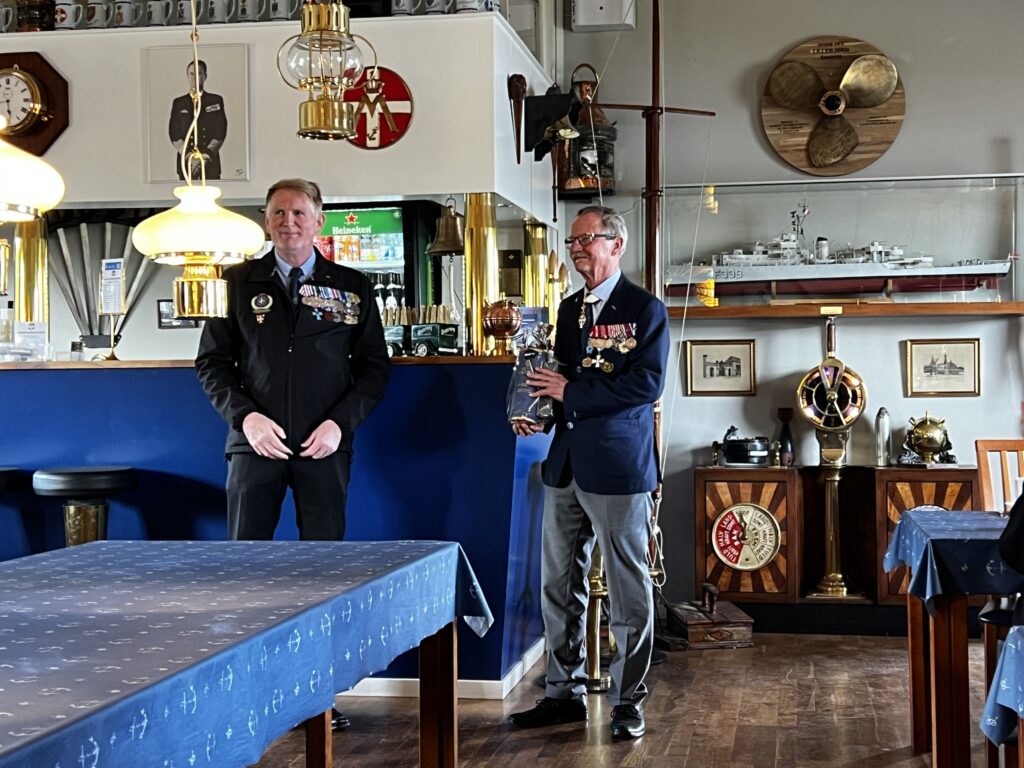 Danmarks Veteraner Kronjylland markerede mandag eftermiddag Peacekeepers Day ved Mindestenen på Randers Havn. Der var fantastisk flot og rekordstor opbakning til vores arrangement med mere end 40 tilmeldte. Efter 6 faner var ført ind omkring vores flotte Mindesten bød formanden velkommen. Efter formandens velkomst tale lagde dagens taler, oberst Christian Arildsen sammen med formanden en krans ved Mindestenen i ære og respekt for veteraner der har været udsendt i fredsbevarende missioner og deres pårørende. Oberst Christian Arildsen holdt herefter en flot, rørende men også barsk tale . Arrangementet sluttede traditionen tro med socialt samvær og et mindre traktement i Marinestuen. I forbindelse med dette udtalte formanden en tak til oberst Christian Arildsen og overrakte ham Kronjyllands traditionelle “feltration” som tak for hans altid imødekommende engagement og interesse i deltagelse ved Danmarks Veteraner Kronjyllands arrangementer.